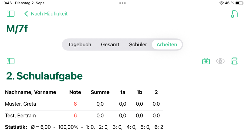 Berühre jeweils für den Schüler, der an der Reihe ist, die gewünschte Aufgabe, für die du eine Bewertung setzen möchtest.