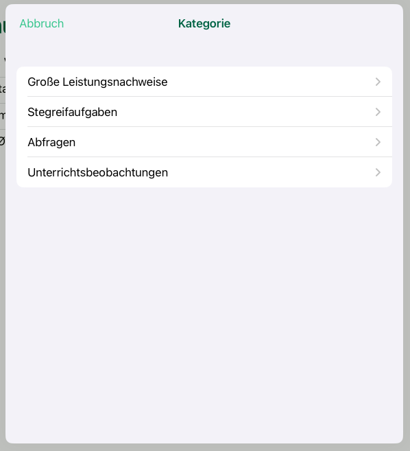 Wähle als erstes zu welcher Kategorie die neue Arbeit gehören soll.