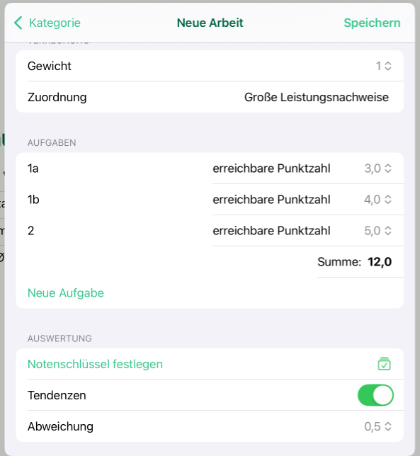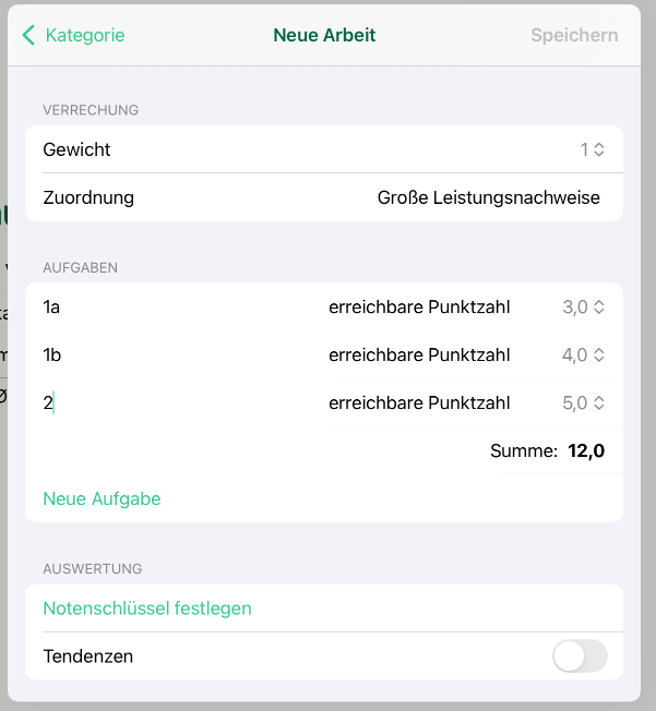 Hast du Aufgaben angelegt, so musst du noch einen Notenschlüssel festlegen.
