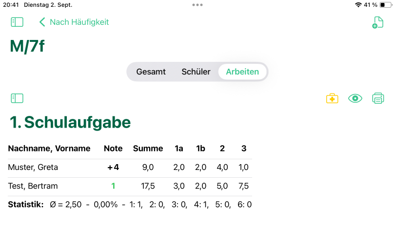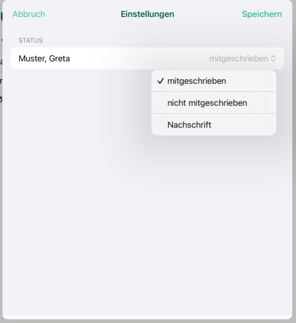 Wenn du Schülerinnen und/oder Schüler hast, die deine Arbeit nicht mitgeschrieben haben oder nachschreiben müssen, so kannst du diese entsprechend kennzeichnen.