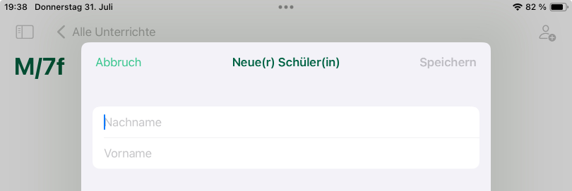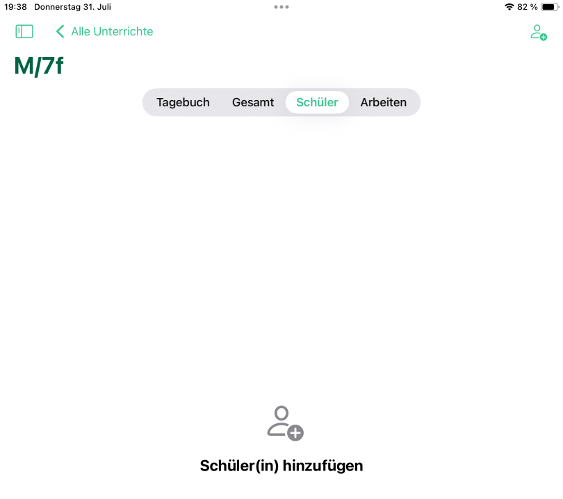 Mit Hilfe der Schaltfläche rechts oben kannst du eine Schülerin oder einen Schüler hinzufügen.