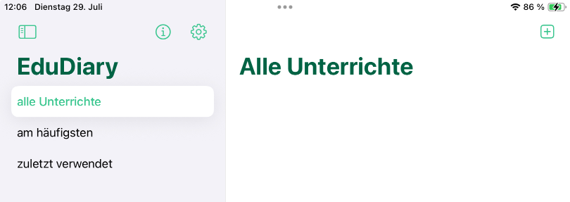 Mit dem Plus-Symbol (rechts oben) kannst du einen (oder mehrere) Unterricht(e) anlegen.