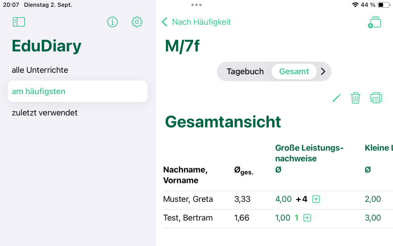 • Unterrichtstagebuch drucken
